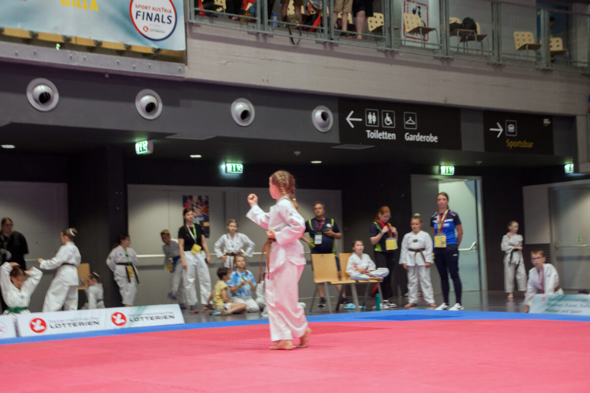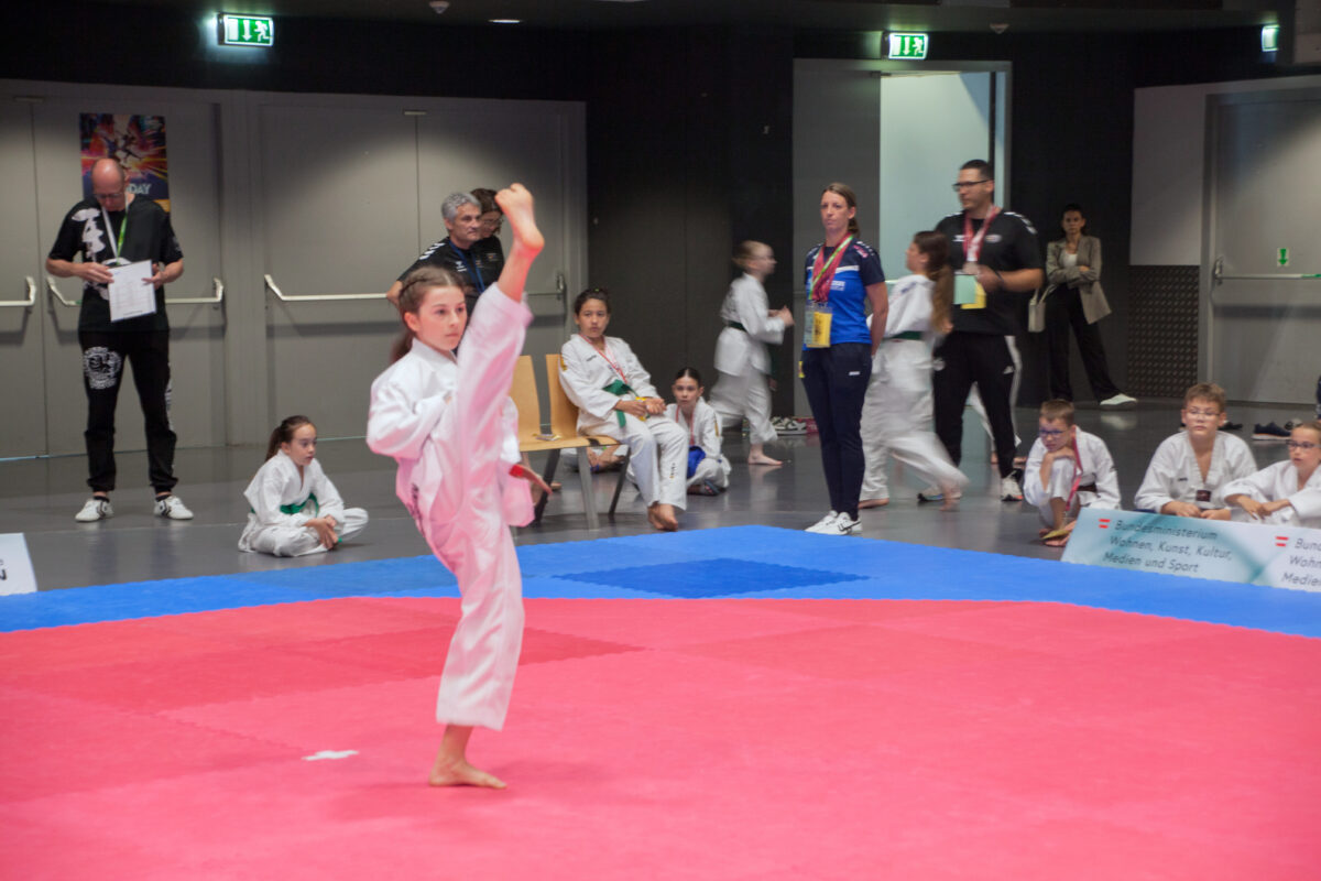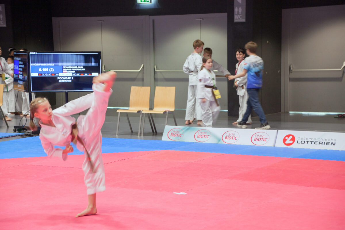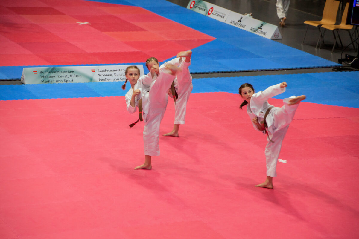 Der zweite Tag war dem Formenlauf gewidmet. Hier traten 175 Starter aus 24 Vereinen gegeneinander an. Den Titel Österreichische Meisterin im Einzel holte sich Anita Schermer mit einer überzeugenden Leistung. Im Teambewerb sicherten sich Amelie Schaller, Julia Petautschnig und Anna Obernauer verdient die Goldmedaille.