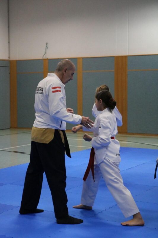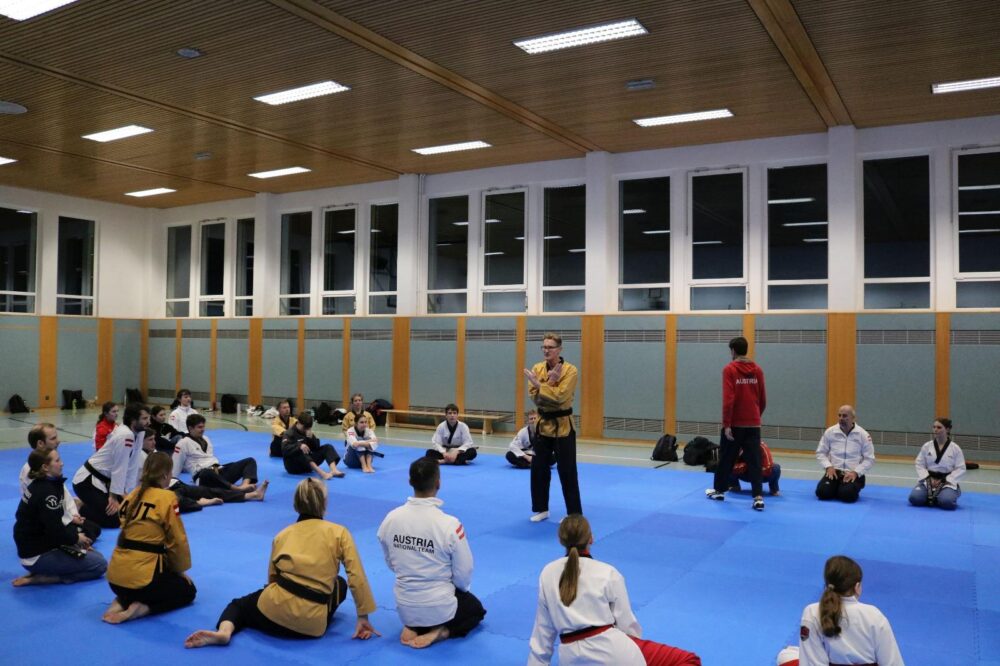 Geleitet wurden die anspruchsvollen Trainingstage von ÖTDV-Bundestrainer Großmeister Kai Müller (9. DAN), der gemeinsam mit seinem hochqualifizierten Trainerteam – darunter auch unser Vereinstrainer Martin – für eine professionelle, strukturierte und individuelle Betreuung der Athletinnen sorgte. Der Fokus lag dabei auf Technik, Präzision, Ausdruck sowie der gezielten Weiterentwicklung der persönlichen Leistungsfähigkeit.
